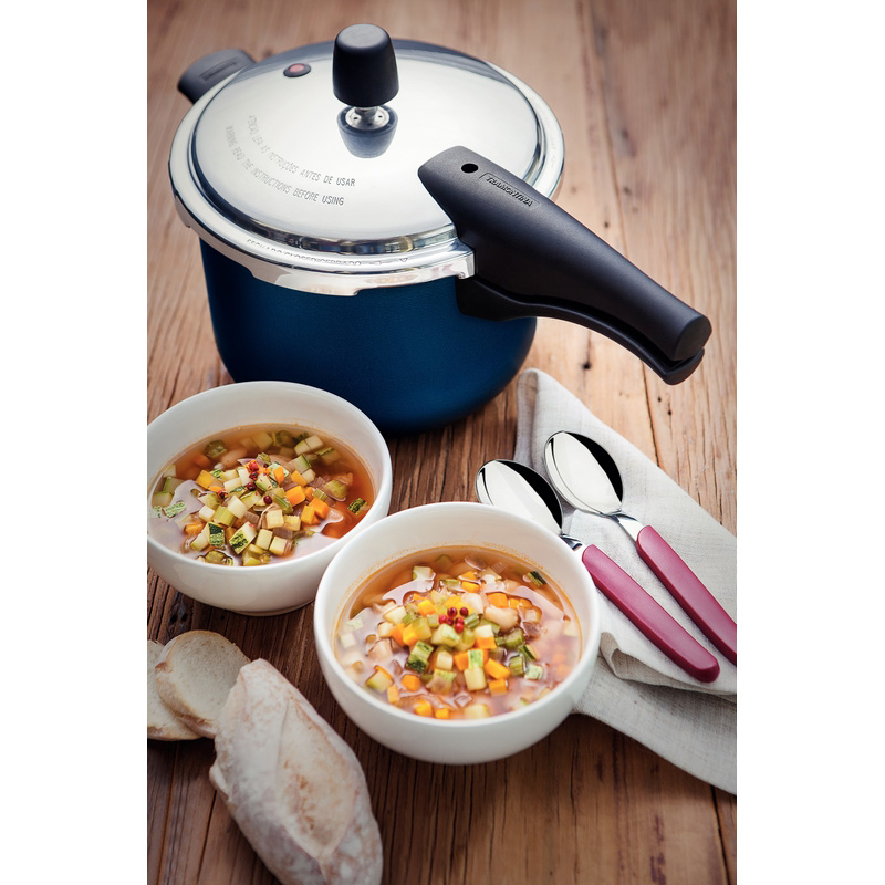 Prepara tus recetas favoritas con toda la agilidad de la Olla a Presión Tramontina Vancouver de Aluminio con Revestimiento Interno y Externo Antiadherente Starflon Max Grafito 20 cm 4.50 Litros. Perfecta para tu rutina en la cocina, permite preparar alimentos más sabrosos de forma más rápida y uniforme, porque cuenta con cuerpo de aluminio con revestimiento interno y externo de antiadherente Starflon Max, característica que evita que se peguen los alimentos. Trabaja bajo una presión de 80 kPa y cuenta con tres válvulas de seguridad que ofrecen lo mejor para tu protección. Además, su tapa tiene terminación externa pulida e interna satinada, lo que la deja todavía más bonita y especial. Lo mejor de Tramontina, pensado especialmente para ti.