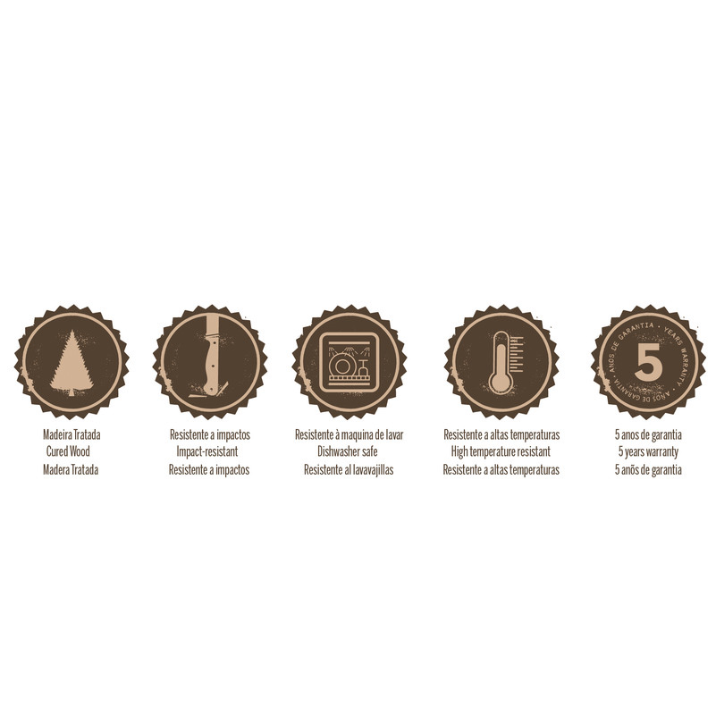 Las comidas informales no dispensan la calidad de los cubiertos, cuchillos y utensilios. Por eso, la línea Polywood tienen láminas de acero inoxidable con formato y espesor que garantizan la resistencia y evitan deformaciones. El tratamiento térmico le proporciona durabilidad al filo y el mango de madera tratada polywood, fijado con remaches de aluminio, es cómodo. Con cinco años de garantía. Resistentes a impactos y altas temperaturas, pueden llevarse al lavavajillas. Los Mangos Polywood son Producidos con un exclusivo Método dónde se originan los colores.