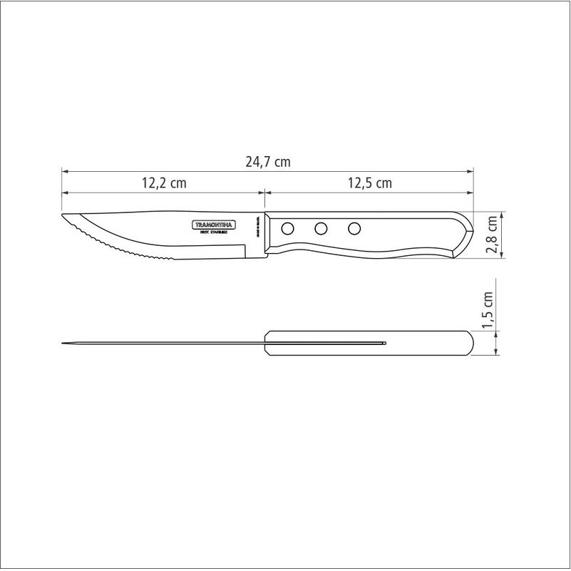 Con el Cuchillo de Mesa Tramontina Tradicional con Láminas de Acero Inoxidable y Mangos de Madera Natural 12 Piezas, tu cena o almuerzo tendrá la calidad y la belleza que tus invitados merecen para disfrutar una comida deliciosa. Fabricado con láminas de acero inoxidable, ofrece más resistencia y durabilidad. Además, los mangos de madera natural proporcionan la combinación perfecta para ambientes rústicos. Belleza y calidad se encuentran en los productos Tramontina.