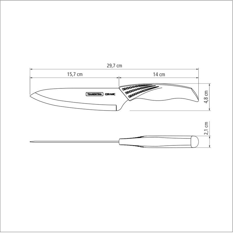 Con la Línea Tramontina Accurato de cerámica con mango revestido de goma y vaina de polipropileno, usted va a garantizar cortes más precisos y delicados Su cocina queda todavía más completa, porque la línea se desarrolló especialmente para proporcionarle todavía más placer al arte de la gastronomía. Con un diseño Pensando en el almacenaje seguro del cuchillo.