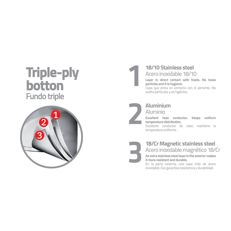 El fondo triple distribuye el calor uniformemente, sin necesidad de usar fuego alto. Además, eso genera ahorro de energía.