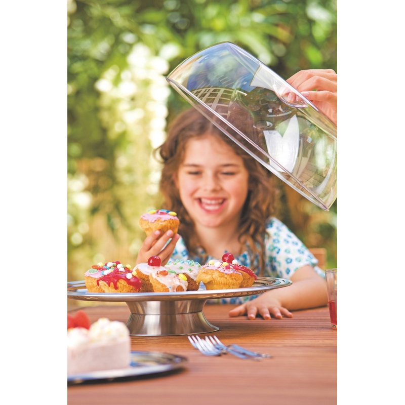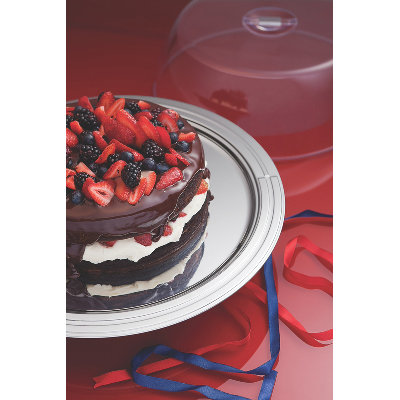 ¡Haga que su pastel o postre sea mucho más hermoso con el plato para pastel Ciclo de acero inoxidable con tapa! es ideal para resaltar un hermoso pastel o una deliciosa torta y tiene una bella base que destaca el plato y proporciona refinamiento al componer la mesa. Posee una terminación brillante, con detalles en alto relieve en el borde del plato. Cuenta con un diseño moderno y viene con una tapa transparente que permite visualizar los alimentos. ¡La línea Ciclo es practicidad y calidad en su día a día!