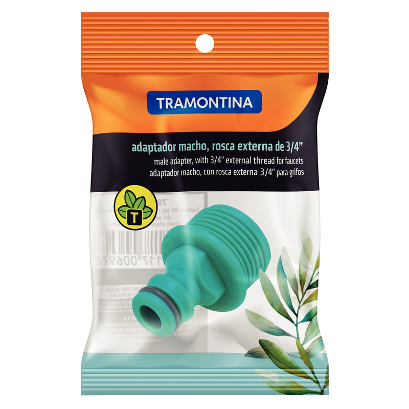 Adaptador macho, con rosca externa 3/4", para grifos. Producto fabricado con materia prima de alta calidad proporcionando una irrigación precisa y confiable. Conexión para el acople rápido de la manguera.