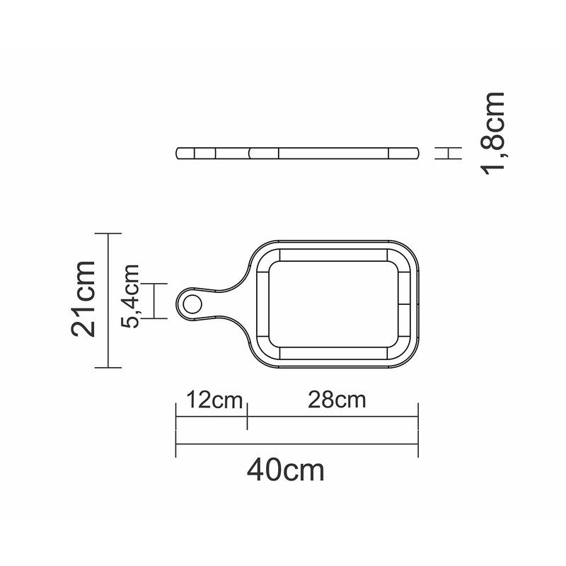 ASADO Tabla Rectangular con Mango 40.0 x 21.0 x 1.8 cm